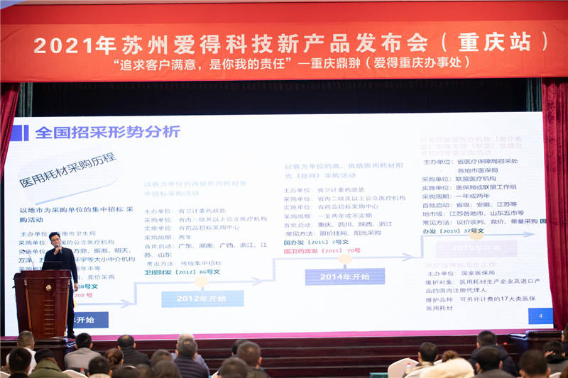 此次參與發布會的嘉賓有:蘇州愛得科技發展股份有限公司骨科事業部全國銷售總監于洋、重慶市鼎翀醫療器械有限公司董事長徐平、重慶市鼎翀醫療器械有限公司總經理袁菲、成都弘彙康商貿有限公司總經理吳江、南京智采信息科技有限公司總經理蔣華、杭州融譽醫療科技有限公司總經理茅亞斌等。此次會議,由愛得科技營銷運營部總監顔玉發主持。