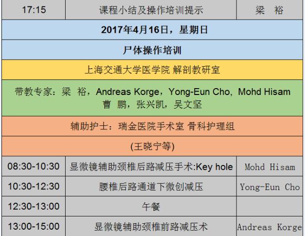 此次課程由上海交通大學醫學院附屬瑞金醫院的梁裕教授親自坐鎮,對課程内容親自把關,力邀海内外講師共同參與!爲了讓每位學員都有所收獲,我們特邀了來自德國的Anderas Korge教授,韓國的Yong-Eun Cho和馬來西亞的Mohd Hisam教授進行指導,手把手帶領學員進行操作,帶您領略不一樣的脊柱世界!